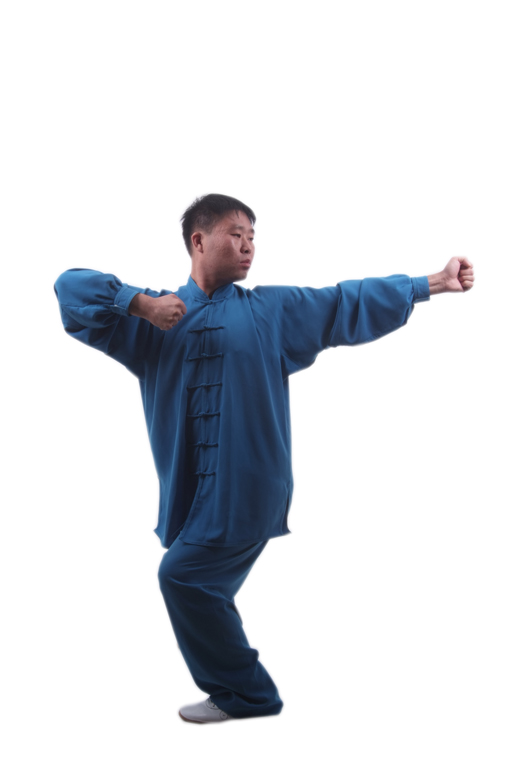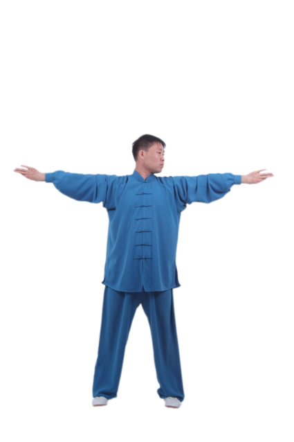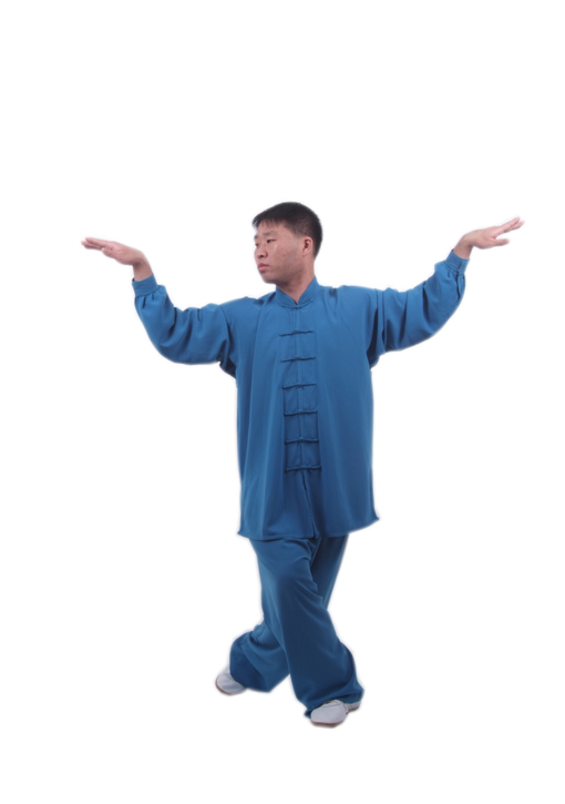 转身旋臂,有助于畅通任督及手三阴,手三阳经脉。中医理论认为,原穴是脏腑原气经过和留止的部位,某一脏腑的病变,往往反应于该经的原穴上,“五脏有疾,当取之十二原”,说明原穴对防治内脏疾病起到重要的作用。手腕、脚踝为原穴所在之处,曲腕成勾手,上步时绷脚,落步时勾脚,对手足三阴,手三阳经之井穴、原穴产生良性刺激,有助于改善各脏腑的功能。吐“呼”音,泄出脾胃之浊气,有和胃健脾,发动真气的作用。