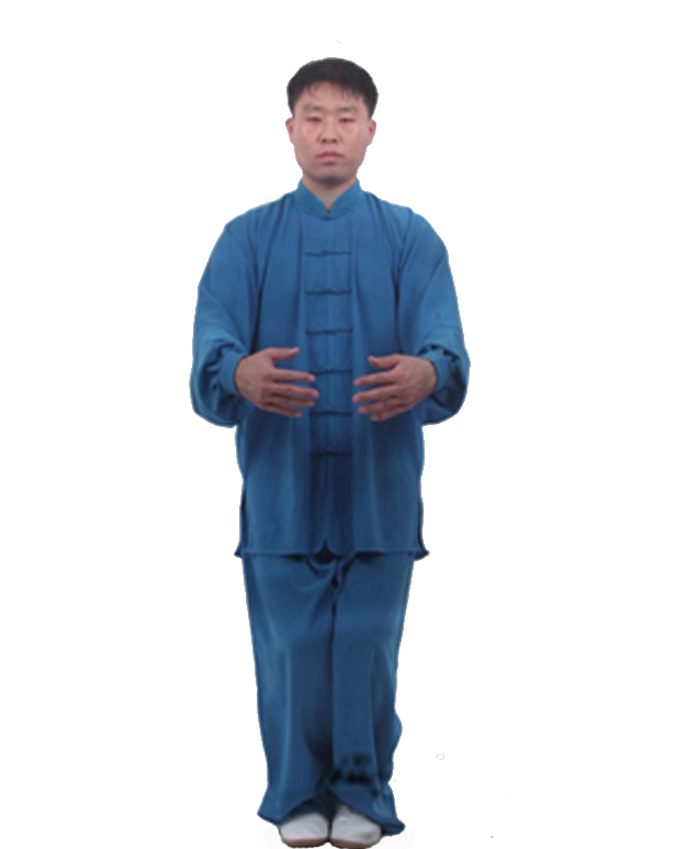 并步站立,周身放松。《素问》曰:“恬淡虚无,真气从之”,所以放松有利于体内气机正常有序的升、降、出、入,给体内气机创造一个稳态的内部环境。